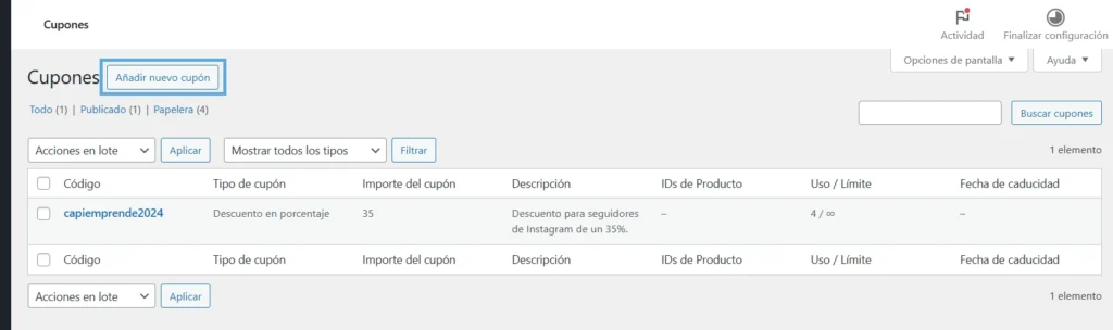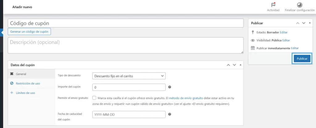 Una vez que hayas configurado todo, presiona el botón “Publicar” para activar el cupón.